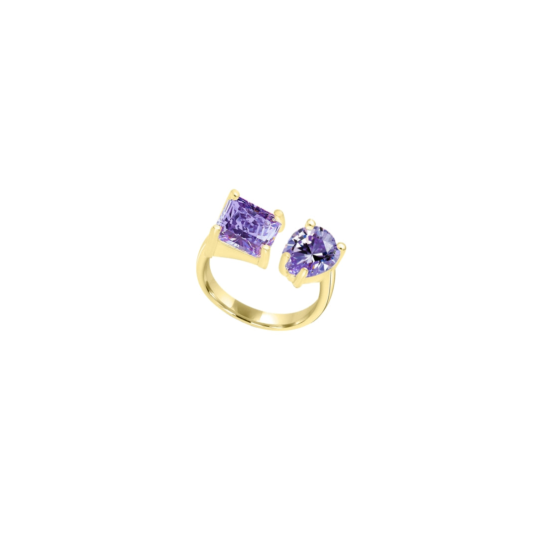 This ring features a pear and square cut AAA grade clear zirconia, each with a four button claw set on a thin half round band.